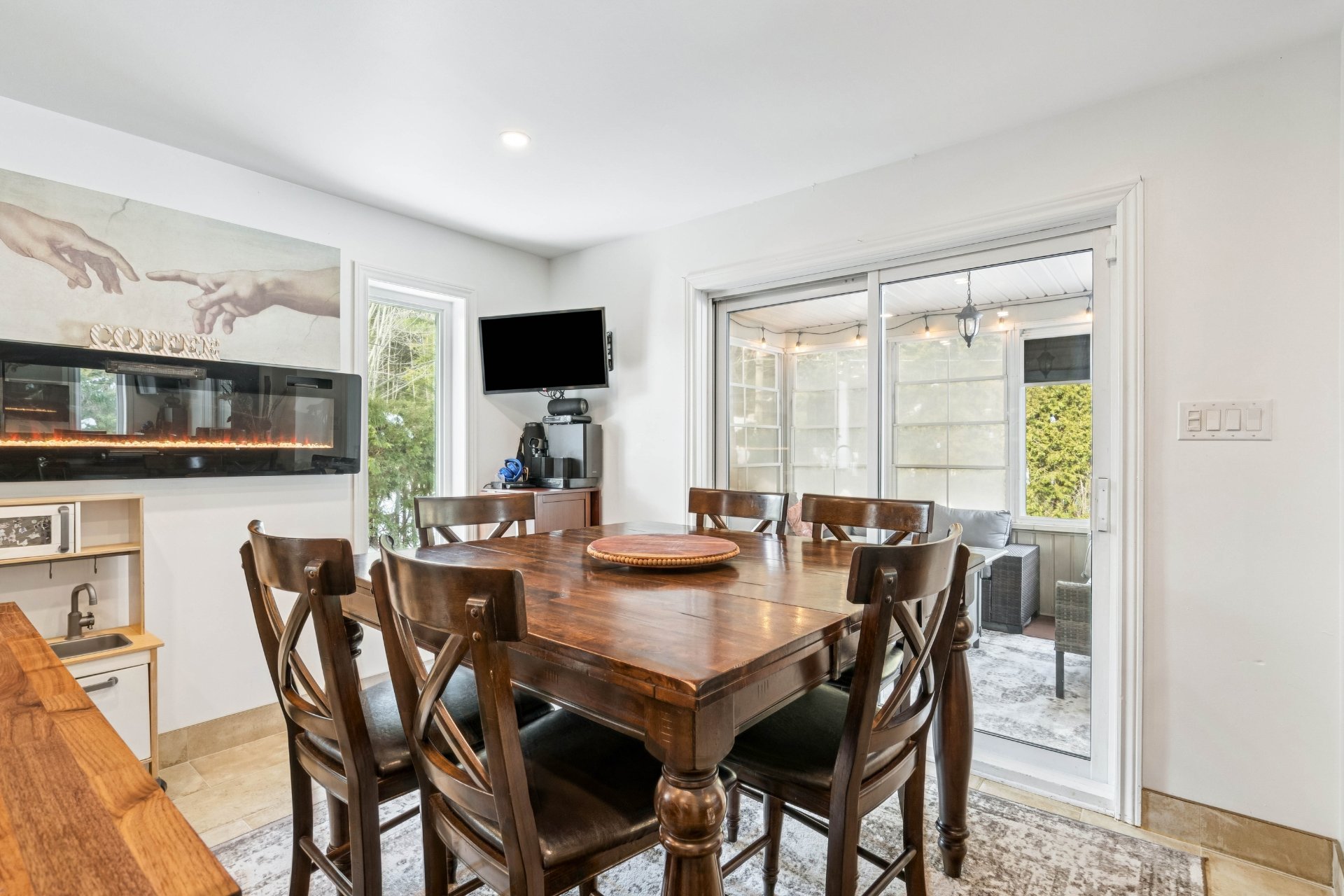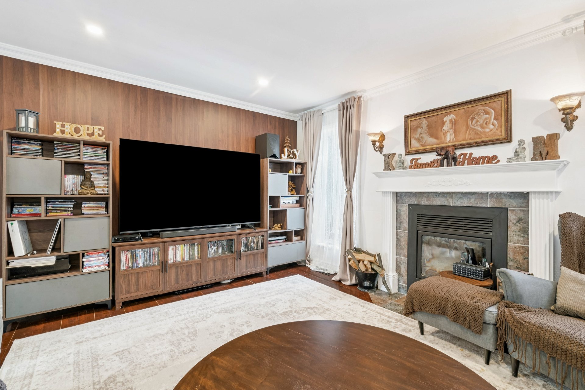 foyer au bois crée une ambiance réconfortante. Une salle de