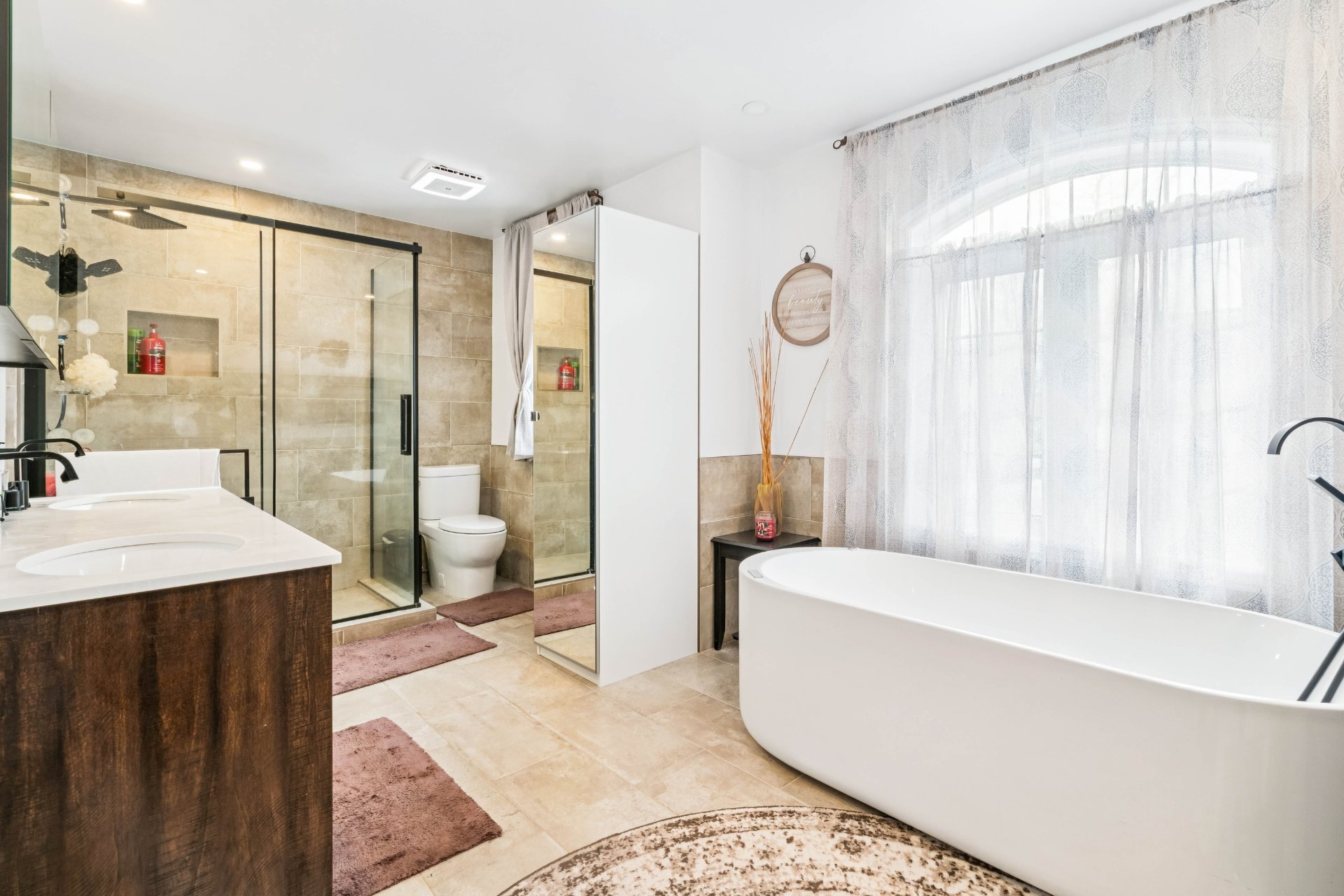 ainsi qu'une somptueuse salle de bains offrant une douche