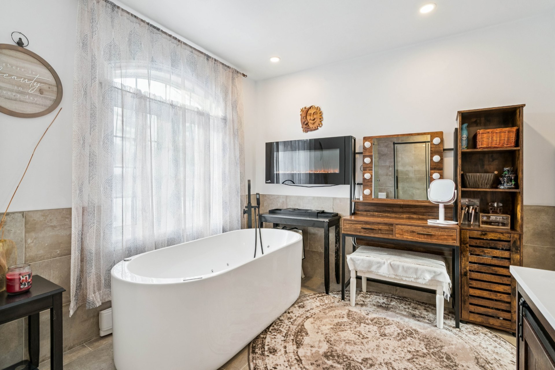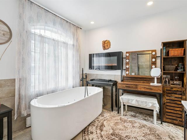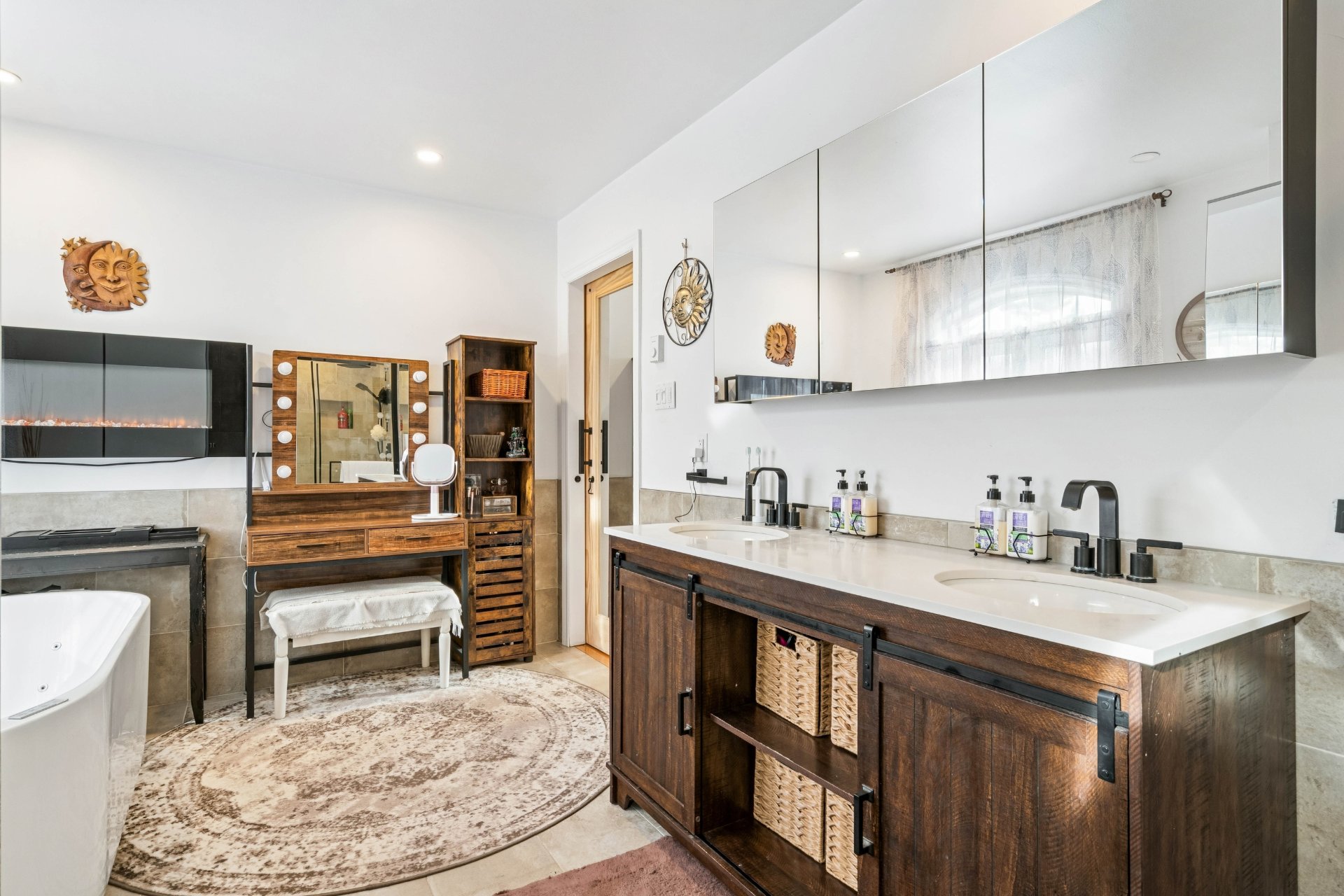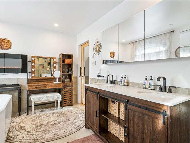 magnifique baignoire à remous, un double lavabo et un foyer