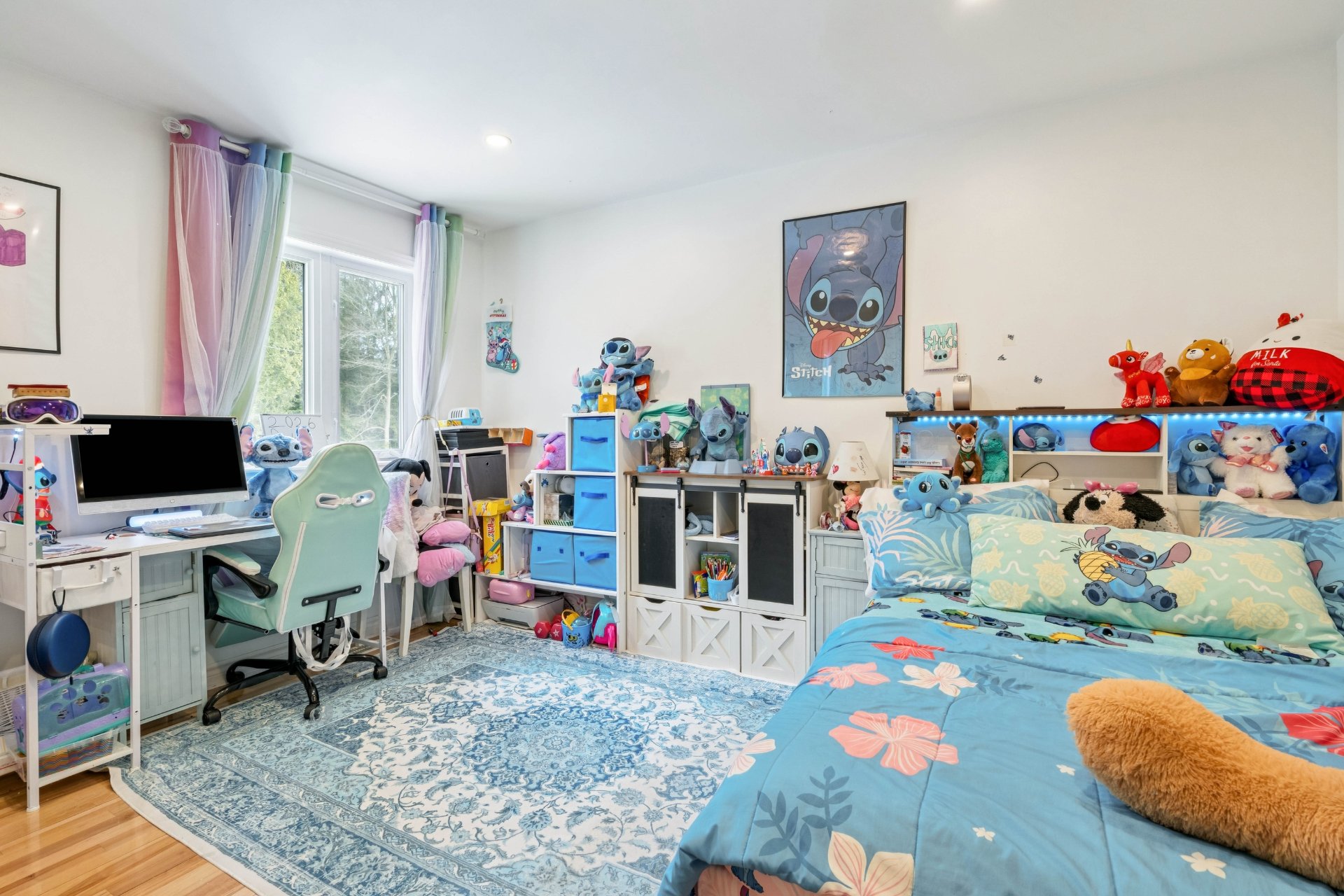 Érigée sur un terrain de 10 362 pc sans voisin à l'arrière,