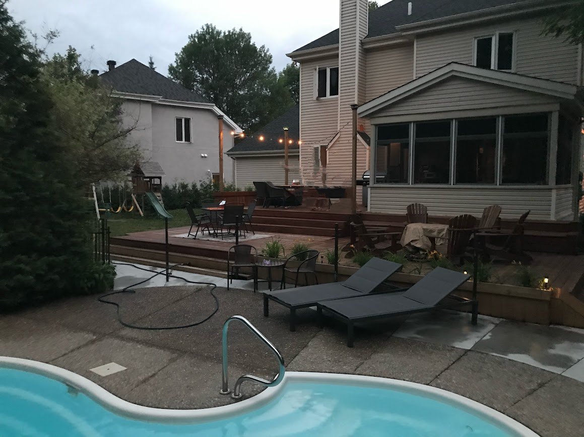 d'une grande terrasse en bois et en béton ajoutée en 2025,