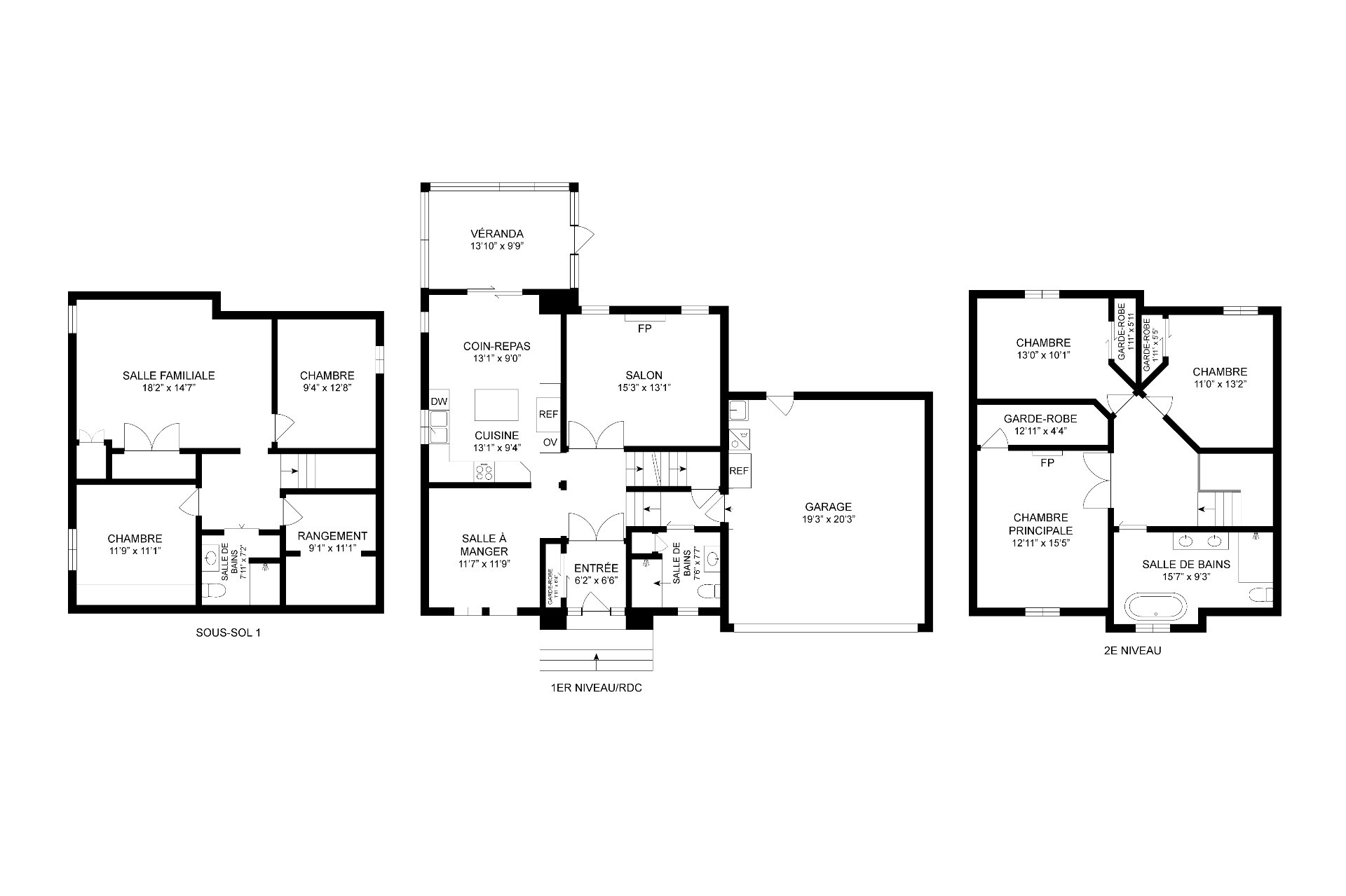 | Salon | Rez-de-chaussée | 15.3x13.1 pi. - Irr | Bois | |