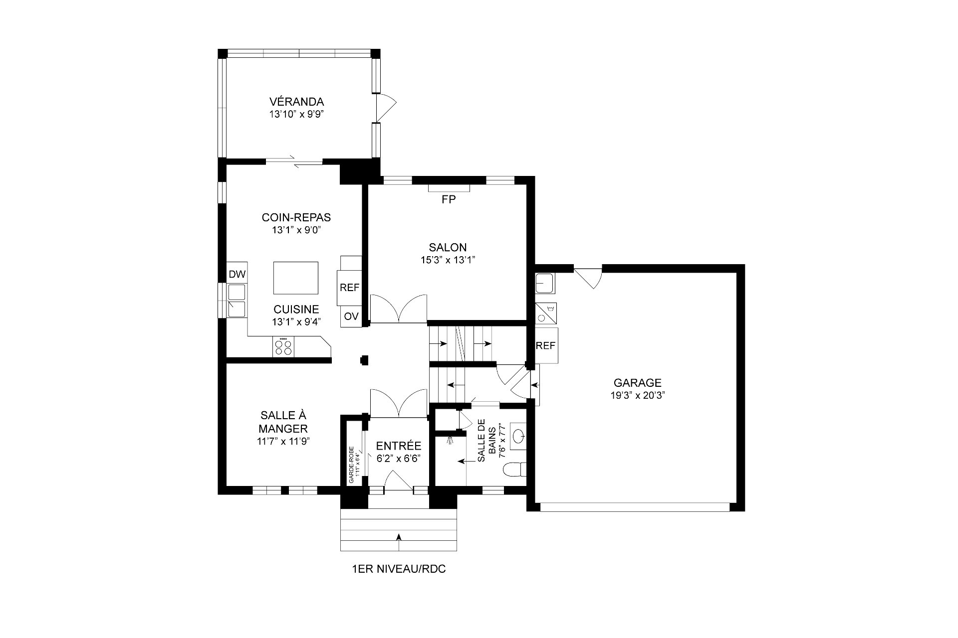 | Véranda | Rez-de-chaussée | 13.10x9.9 pi. | Bois | |