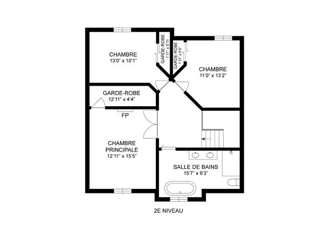 | Chambre à coucher | 2ième étage | 13.0x10.1 pi. - Irr | Bois | |