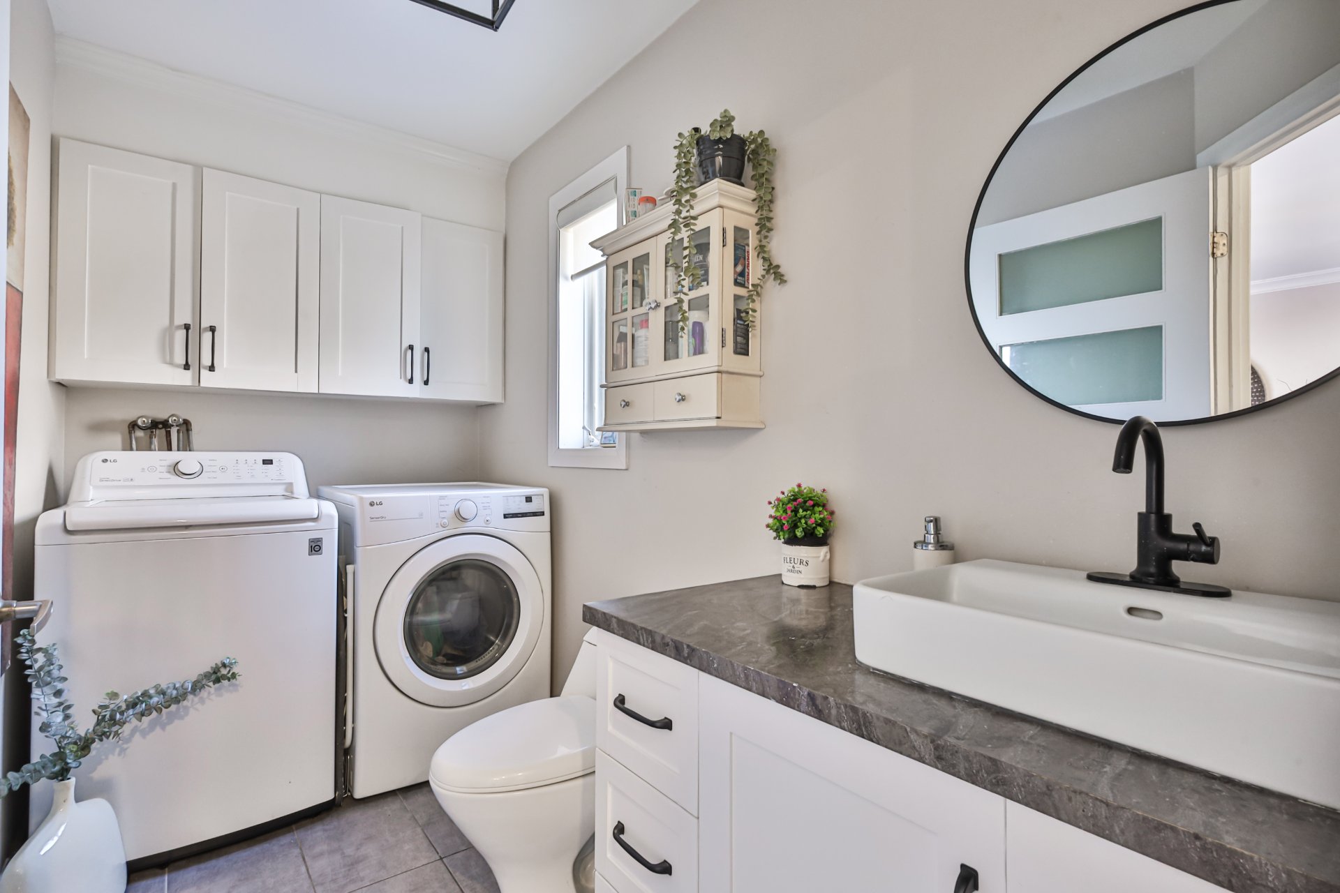 sécheuse. Le plancher flottant couvre l'ensemble du