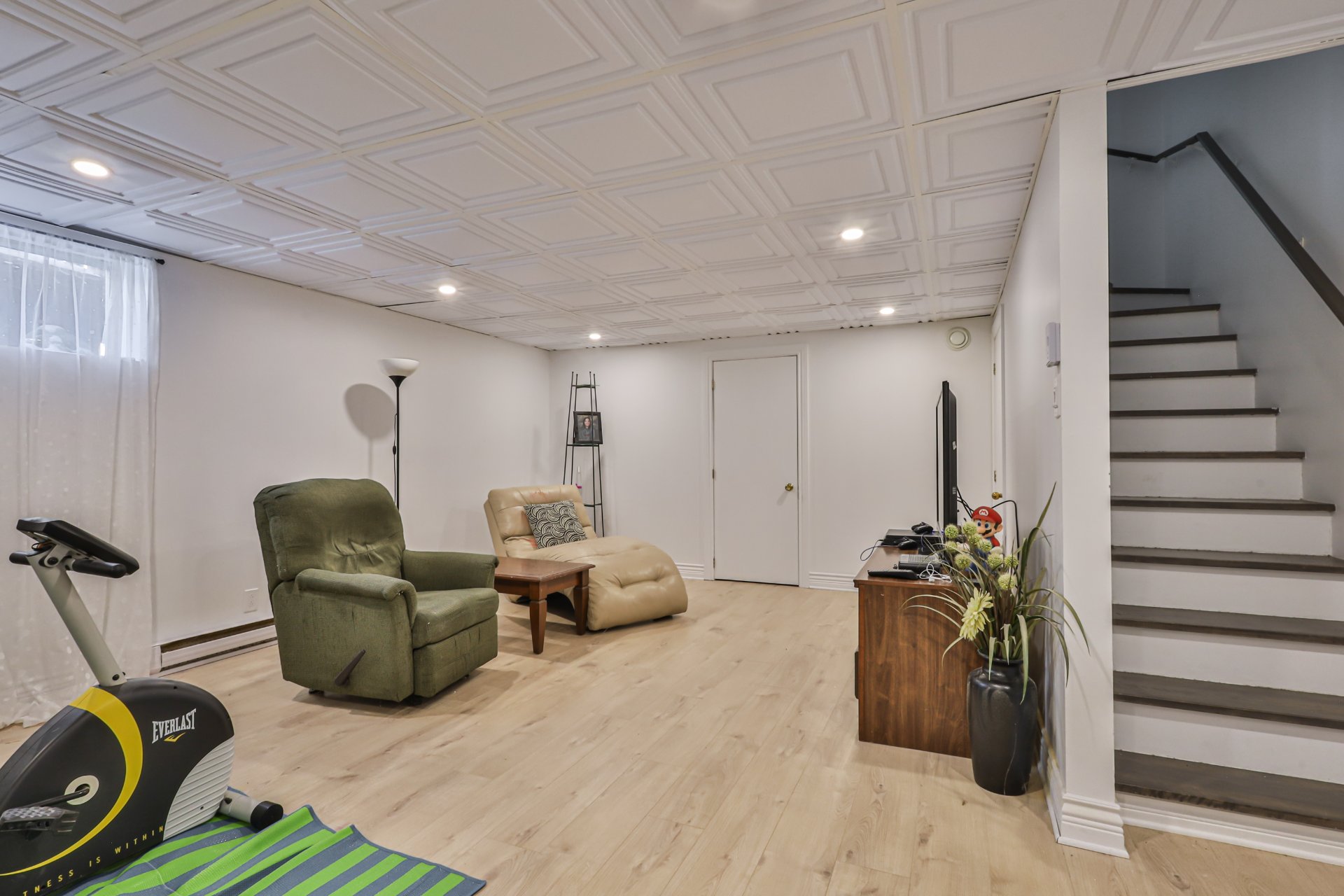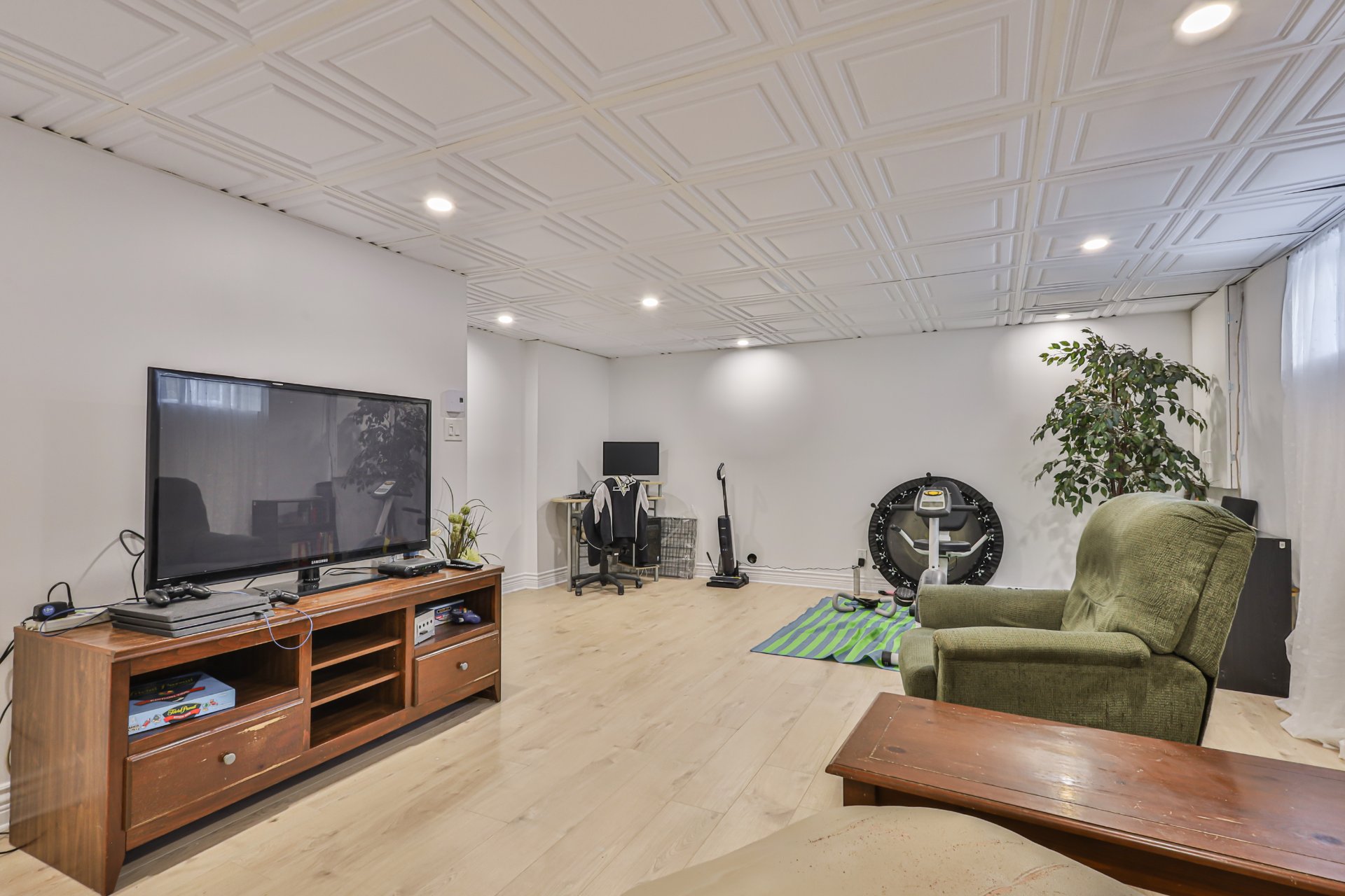 Le sous-sol propose une vaste salle familiale avec plancher