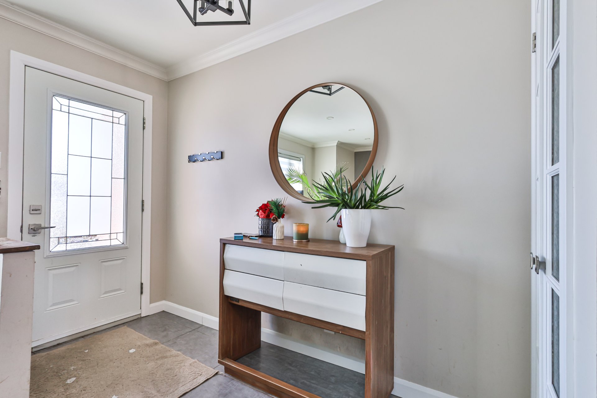 découvrirez un hall d'entrée menant à un salon accueillant
