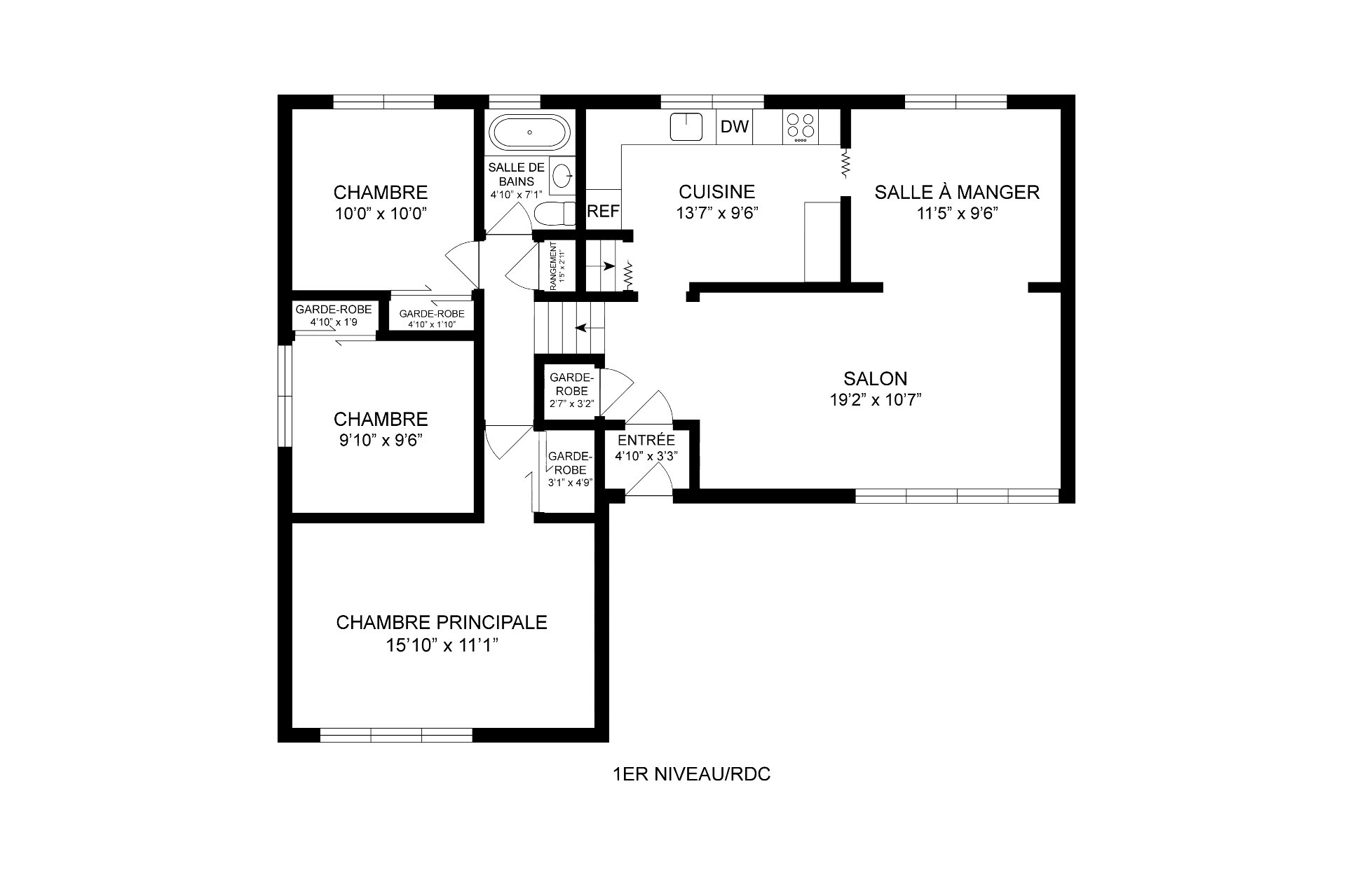 | Chambre à coucher principale | Rez-de-chaussée | 15.10x11.1 pi. - Irr | Tapis | WALK IN |