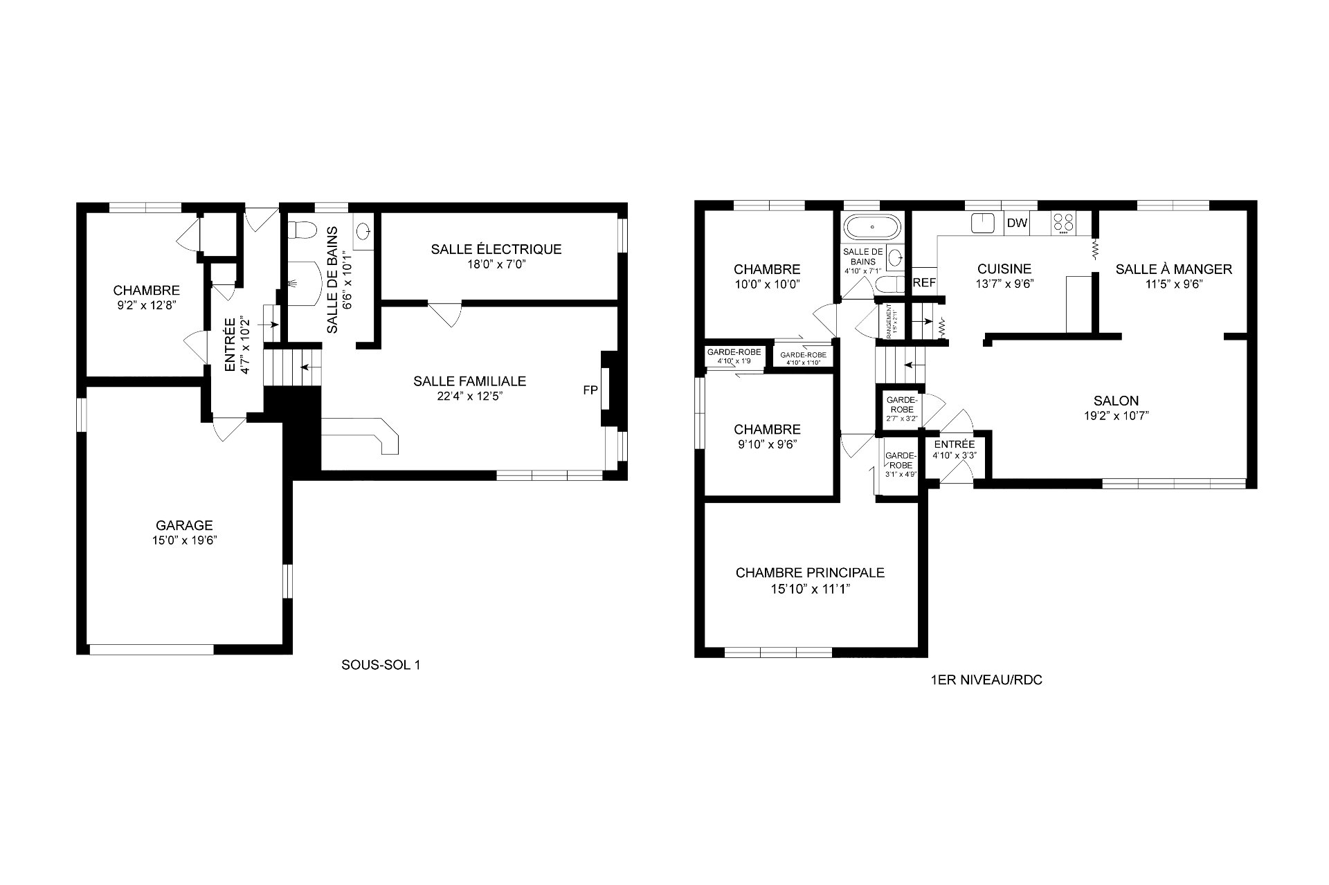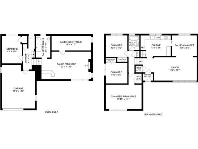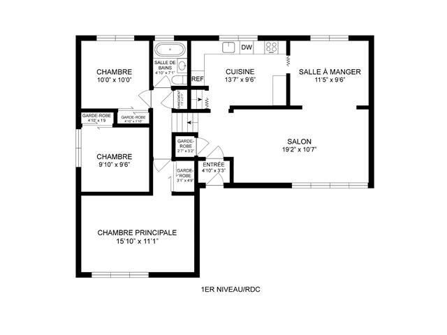 | Salon | Rez-de-chaussée | 19.2x10.7 pi. - Irr | Tapis | |
