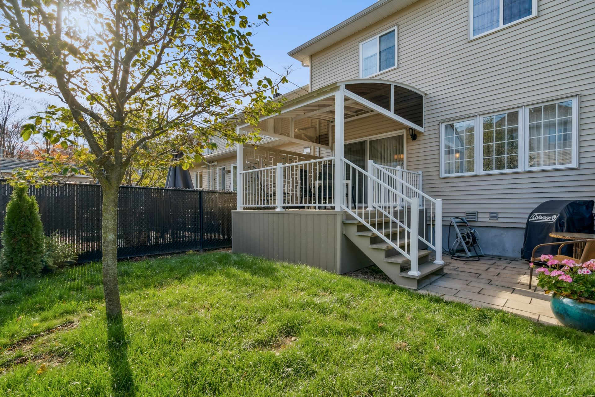 cour clôturée avec patio, terrasse et espace vert, idéale
