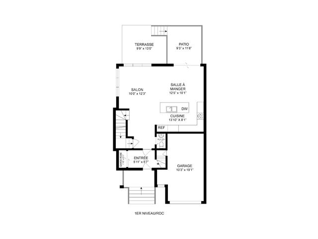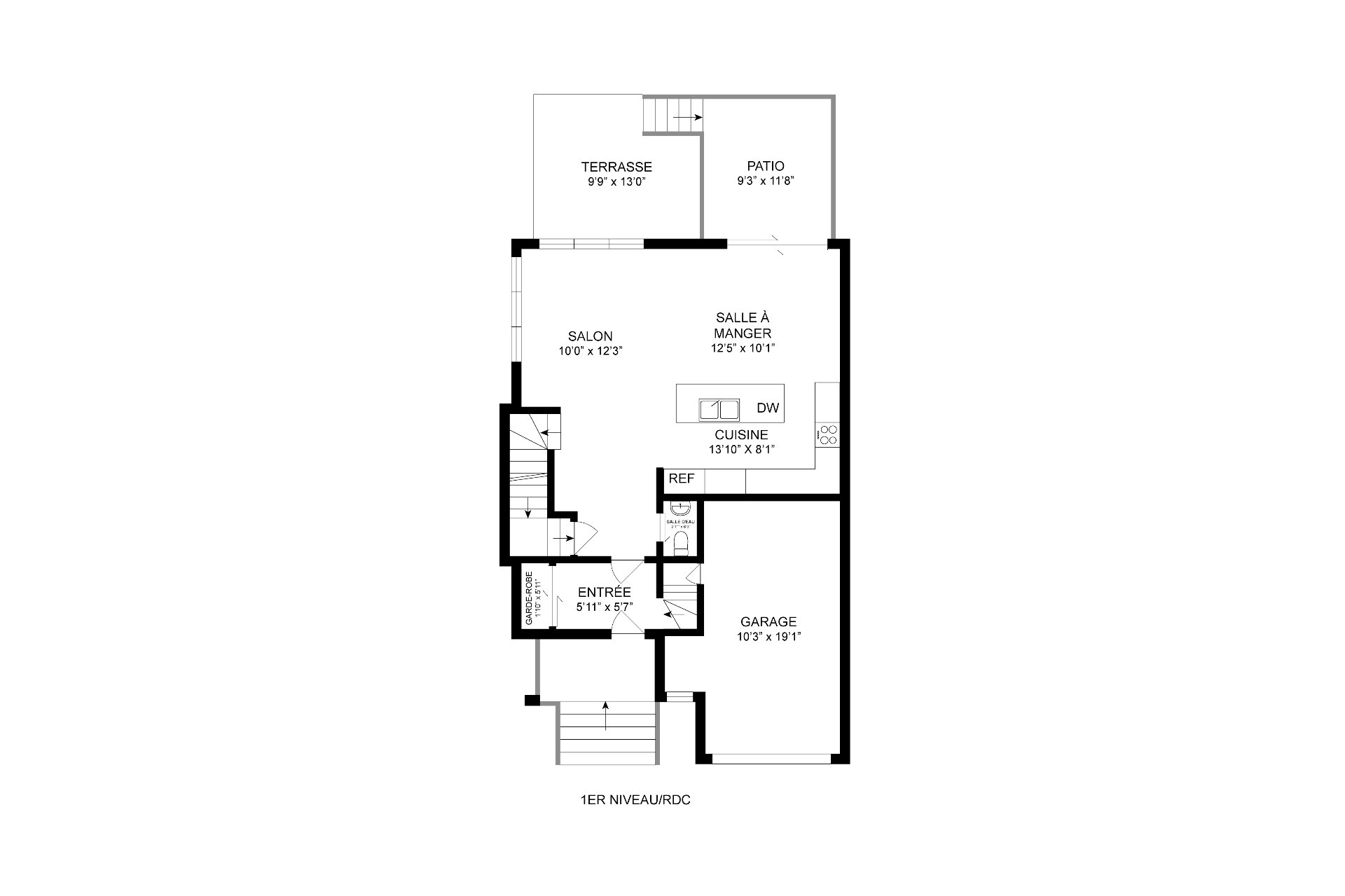 | Salon | Rez-de-chaussée | 10.0x12.3 pi. - Irr | Bois | |